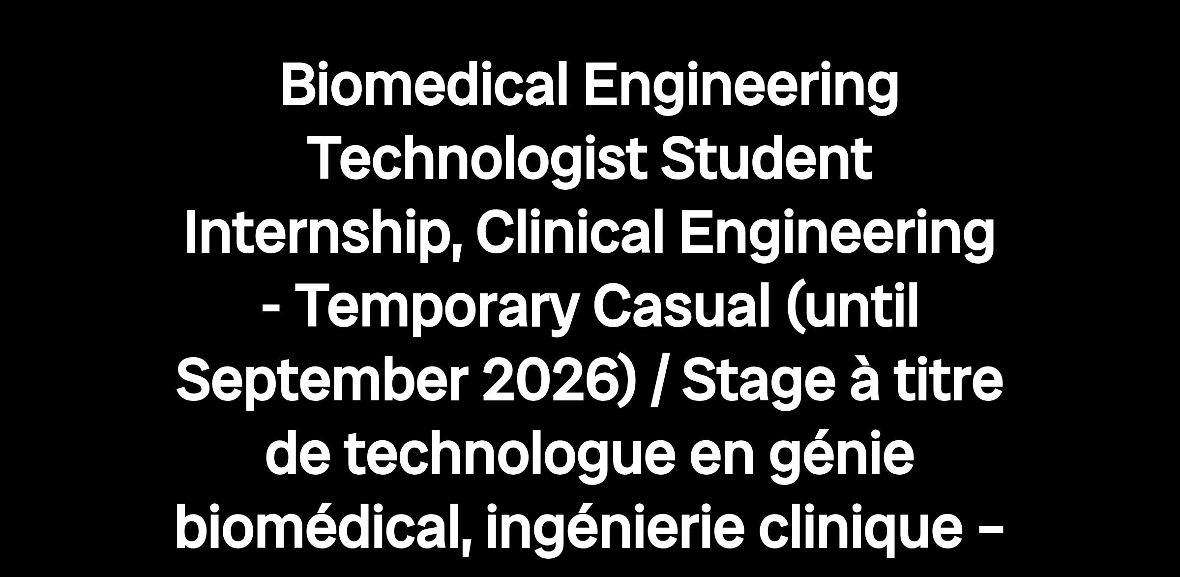 Le stage à titre de technologue en génie biomédical soutenu par la Fondation Leacross a été créé afin d’offrir aux femmes en science, technologie, ingénierie et mathématiques (STIM) une expérience pratique dans le domaine des technologies médicales tout en soutenant les besoins croissants du service en matière de maintenance axée sur les données, de planification du cycle de vie de l’équipement et de soutien technique. Étant donné que les hôpitaux s’appuient de plus en plus sur des appareils médicaux interconnectés et des systèmes numériques, l’équipe d’ingénierie clinique bénéficie d’une capacité d’analyse supplémentaire et de nouvelles perspectives techniques. Ce stage renforce la capacité du service à maintenir de l’équipement sûr et fiable, tout en aidant les étudiantes et étudiants à acquérir des compétences pratiques qui complètent leur formation universitaire. Les principales fonctions de la personne stagiaire à titre de technologue en génie biomédical comprennent l’entretien préventif de l’équipement, la réparation et la prestation de soutien technique au personnel clinique, l’observation du travail des technologues en génie biomédical dans leurs activités quotidiennes, la participation à des initiatives de qualité ainsi que la familiarisation avec les normes réglementaires, la gestion des risques et les opérations hospitalières.